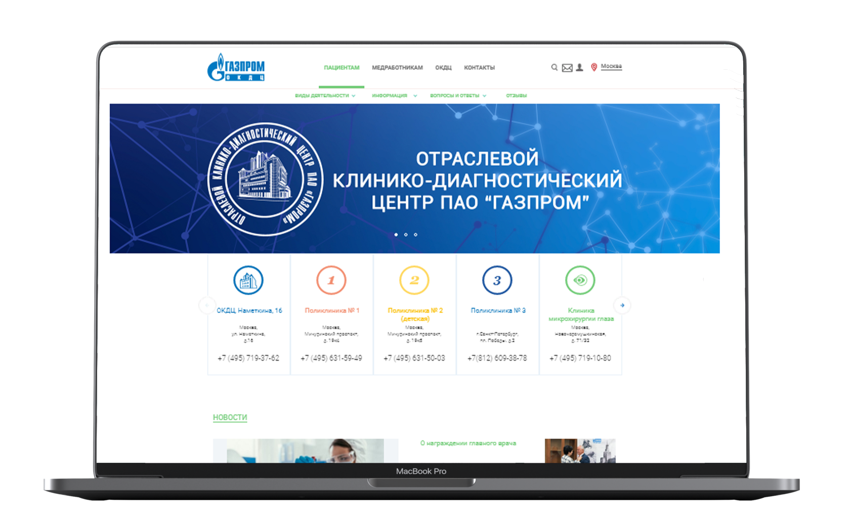 Разработали портал на базе 1С-Битрикс с автоматическим добавлением информации, удобной системой поиска по сайту, с реализацией новостного раздела и личным кабинетом, куда могут заходить как мед. работники, так и пациенты.